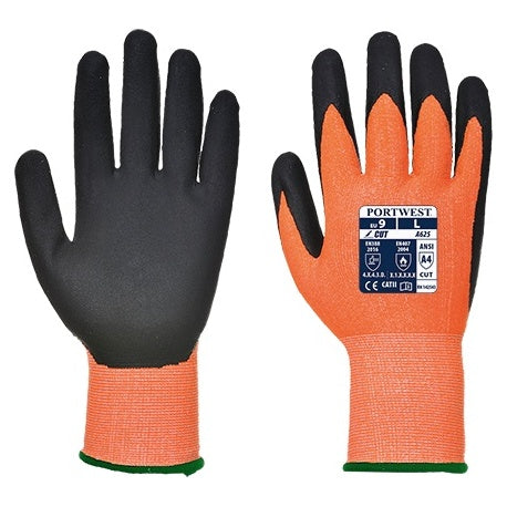 PortwestMănușa cu rezistenta la taiere nivel D cu strat de PU pentru rezistență mare la frecare căptușeala HPPE atinge de asemenea nivelul 1 pentru căldura de contact. Căptușeala hi-vis flexibila pentru o protecție optimă și confort.