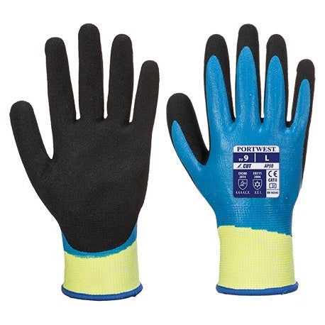 PortwestAceste manusi total impregnate Aqua Cut Pro ofera nivel D de rezistenta la taiere. Primul strat de impregnare este realizat din nitril moale iar al doilea este spuma de nitril asigurand aderenta perfecta si o bariera impotriva agentilor de contaminare. Mansetele elastice asigura adaptare perfecta